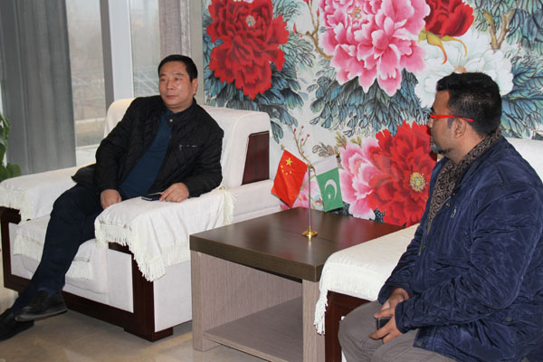 2015-1-24上午在東起集團(tuán)在(外貿(mào)公司張總)的帶領(lǐng)下,一行四人來(lái)到公司,進(jìn)行友好來(lái)訪,公司董事長(zhǎng)王立建親自接待并陪同客人到車(chē)間觀摩。雙方在友好合作的前提下進(jìn)行了細(xì)致的交談,并達(dá)成共識(shí)。巴基斯坦客人對(duì)東起公司做出了肯定,并草擬了合作意向書(shū),此次來(lái)訪另客人在十分滿(mǎn)意的前提下***結(jié)束!